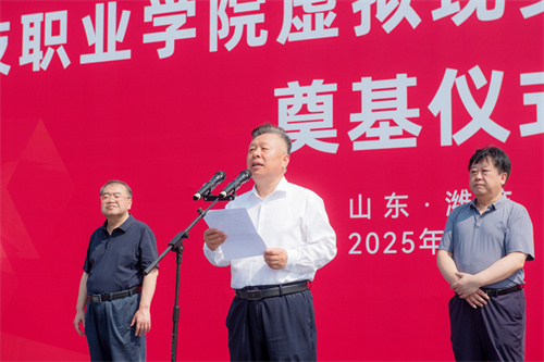 2025年7月17日上午,山東科技職業學院虛擬現實實訓中心項目奠基儀式在項目現場隆重舉行。學院黨委書記鄭德前,集團公司總裁朱九洲,山東省工程咨詢院黨組成員、副院長何健,山東建筑大學設計集團有限公司董事長、總經理李端杰,招商銀行濰坊分行黨委書記、行長潘兆強,學院黨委委員、紀委書記秦建坤,學院黨委委員、副校長徐曉雁、董傳民,學院副校長張振東出席奠基儀式。